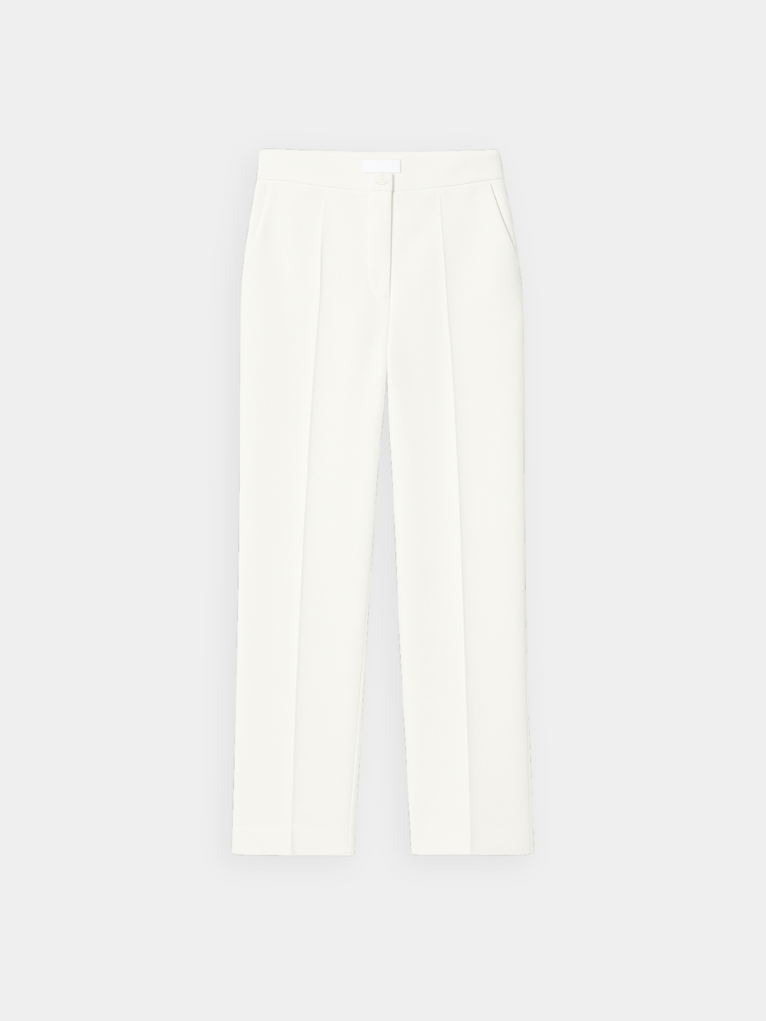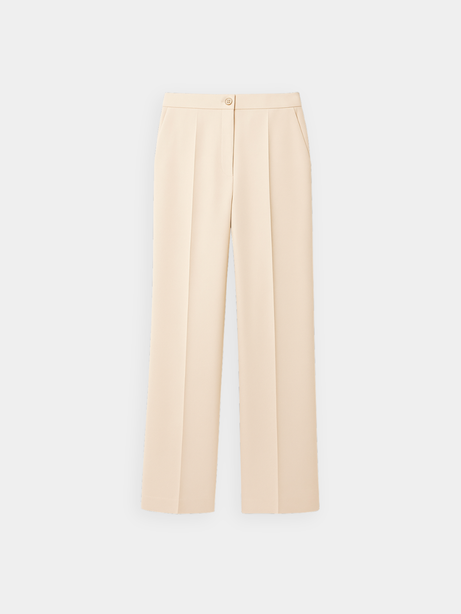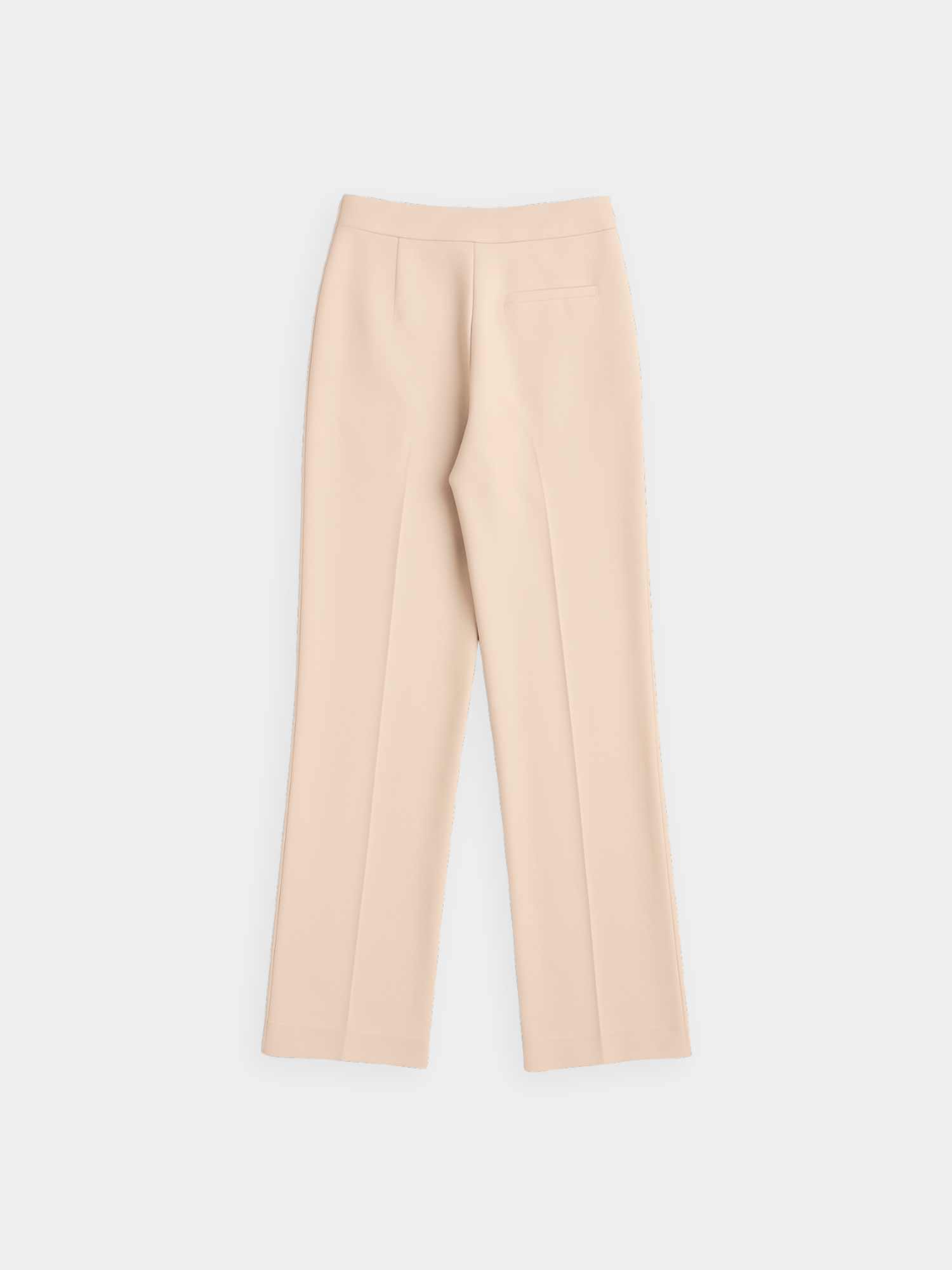 Made from a smooth, lightweight fabric with gentle drape, they offer comfort and structure suitable for both professional and everyday settings. A front button and concealed zip closure provide a polished finish, complemented by subtle pleats and precise seams for added definition.