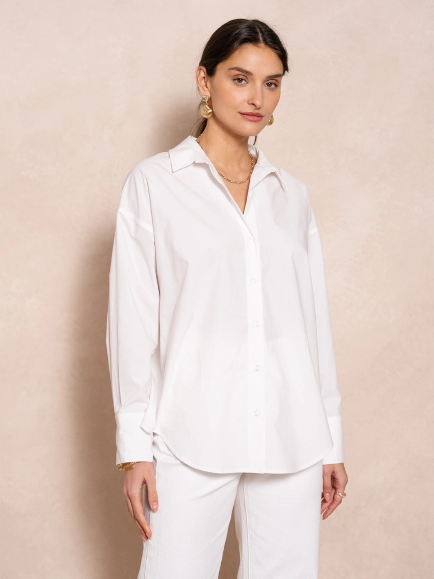 The Maison Marlowe 100% Cotton Notched Collar Shirt is a timeless essential designed with quiet sophistication and refined structure. Crafted from premium breathable cotton, it offers a relaxed, oversized fit that drapes naturally for all-day comfort.